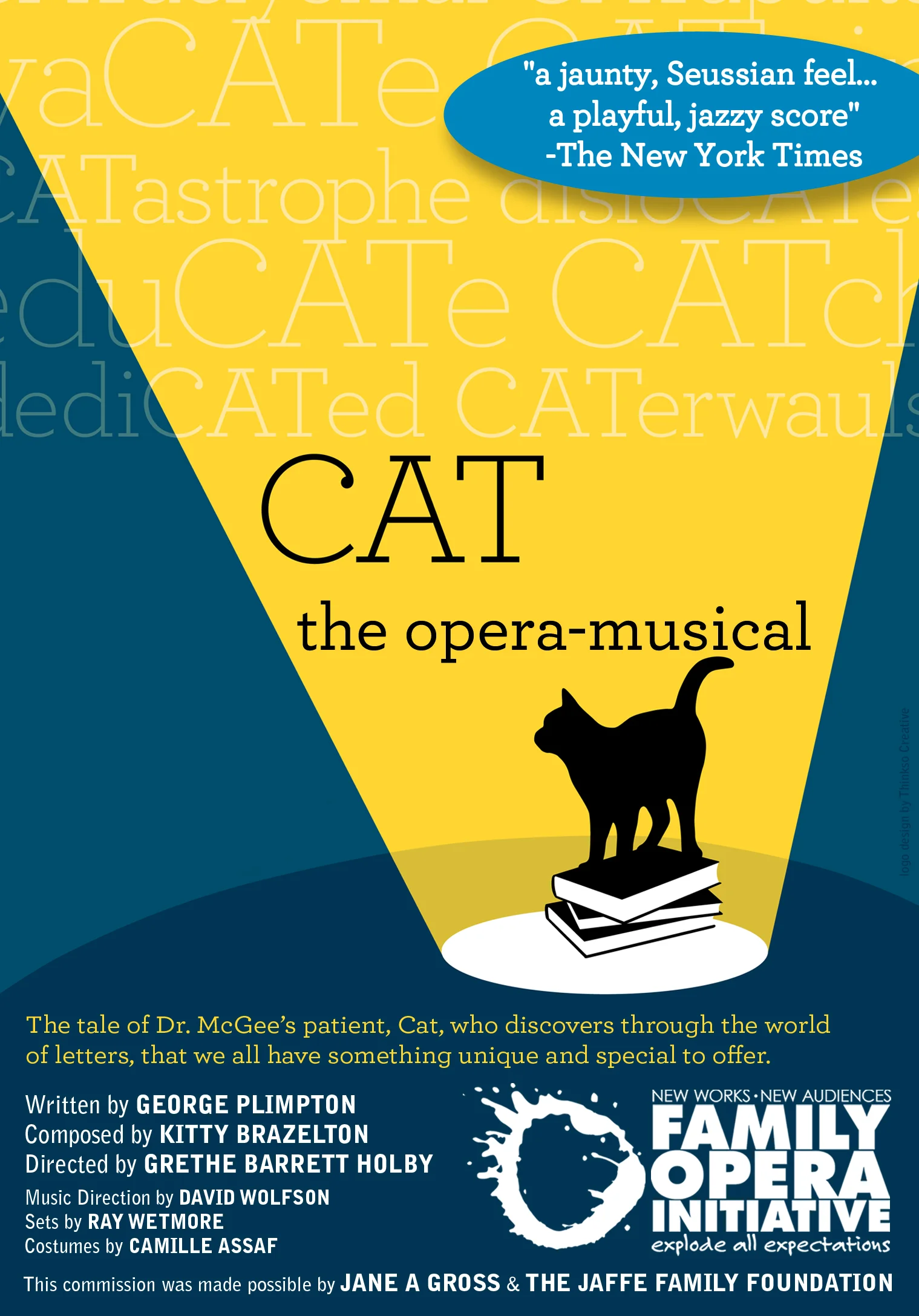 CAT is a one-act, participatory opera/musical conceived for audiences ages 4-12 and their families. This gentle tale takes us on a humorous and thought-provoking journey as CAT explores the topics of self-worth, literacy, and the heartbreaking effects of bullying. CAT teaches the young and young-at-heart about self-respect.
